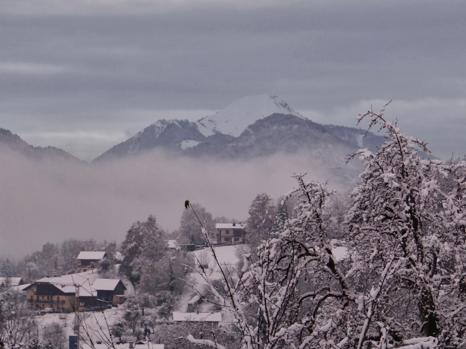 Waking to fresh snowfall, the paints came straight out, a scrap of paper was found and about twenty minutes was spent painting this little scene from the warmth of the chalet.